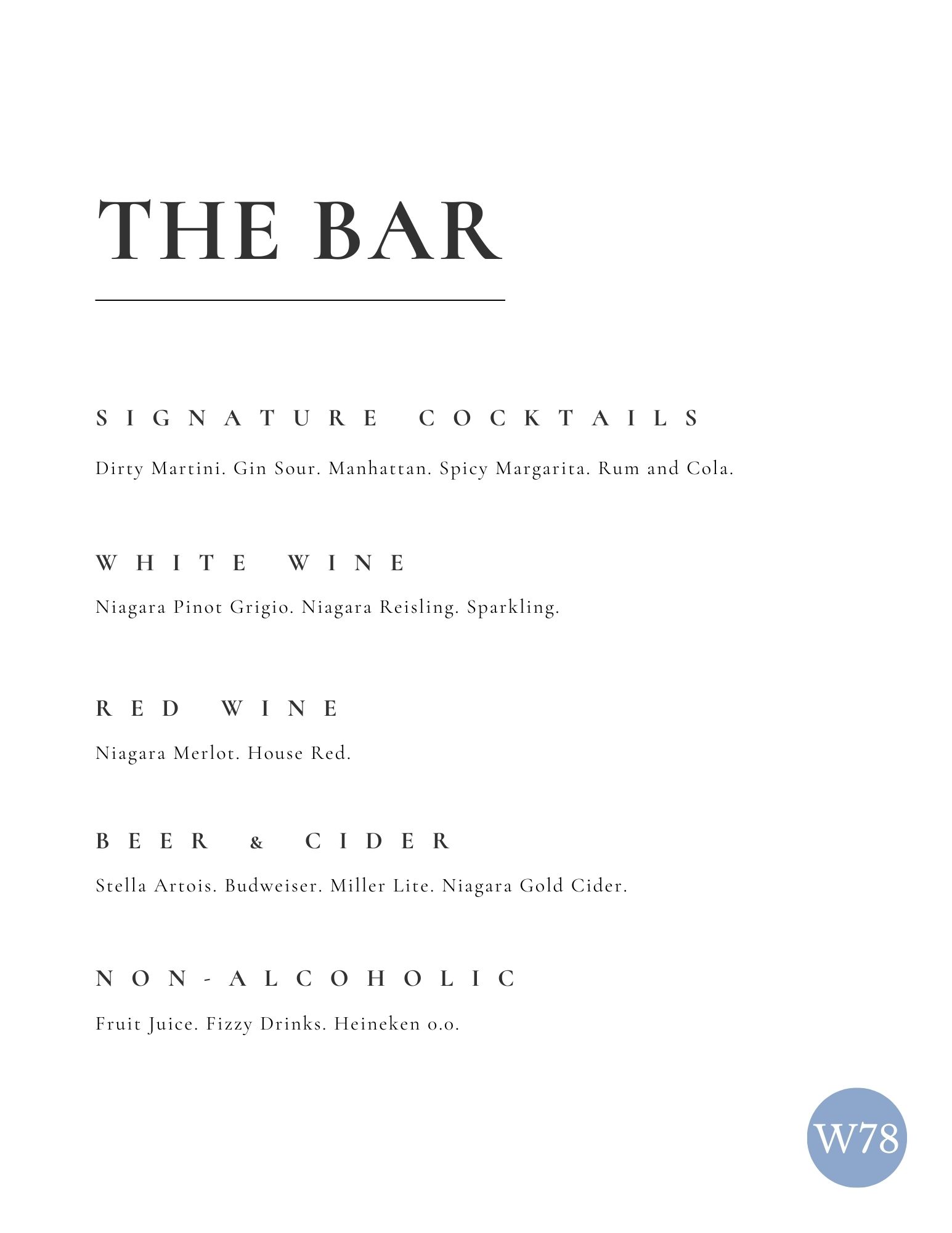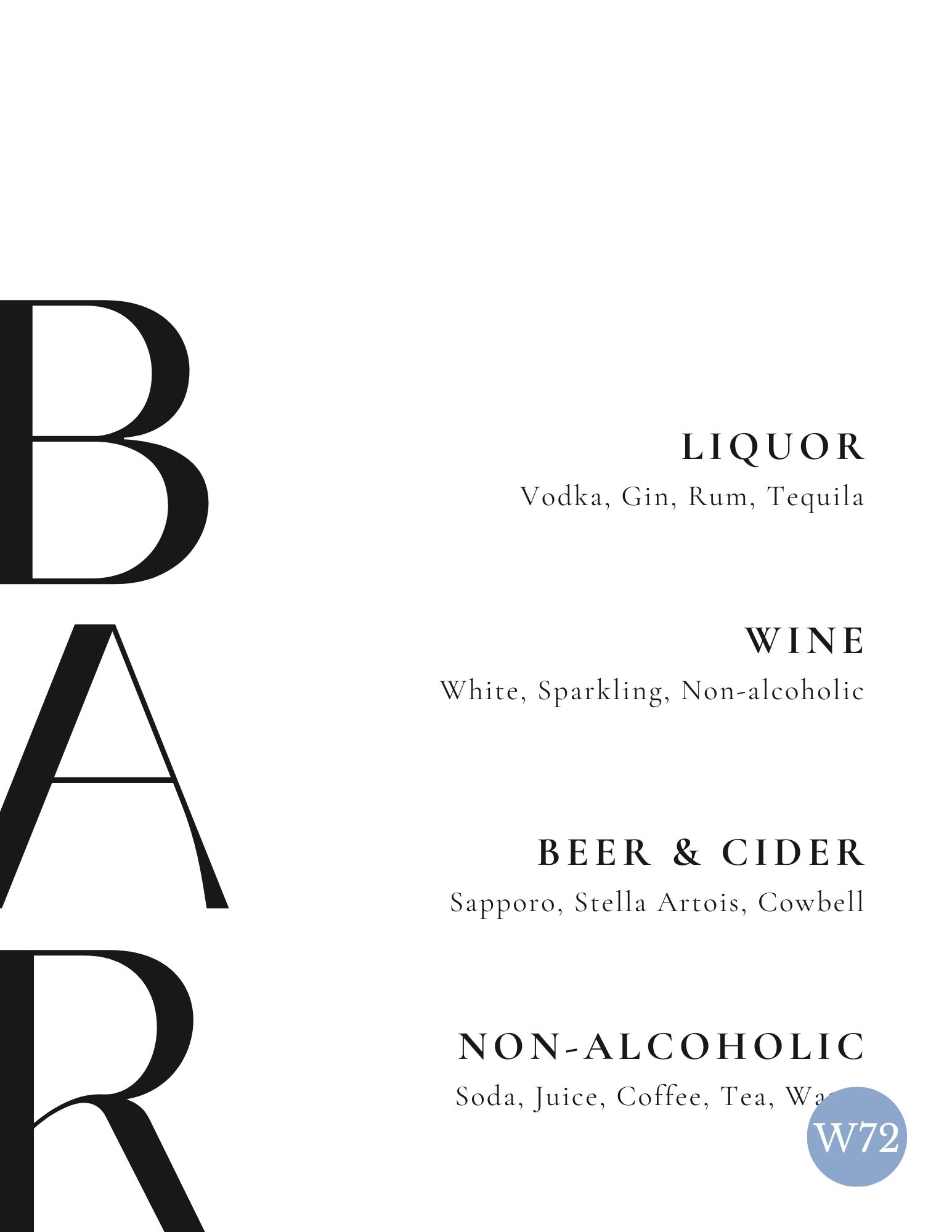 Menus, Bar Signs & Table Numbers